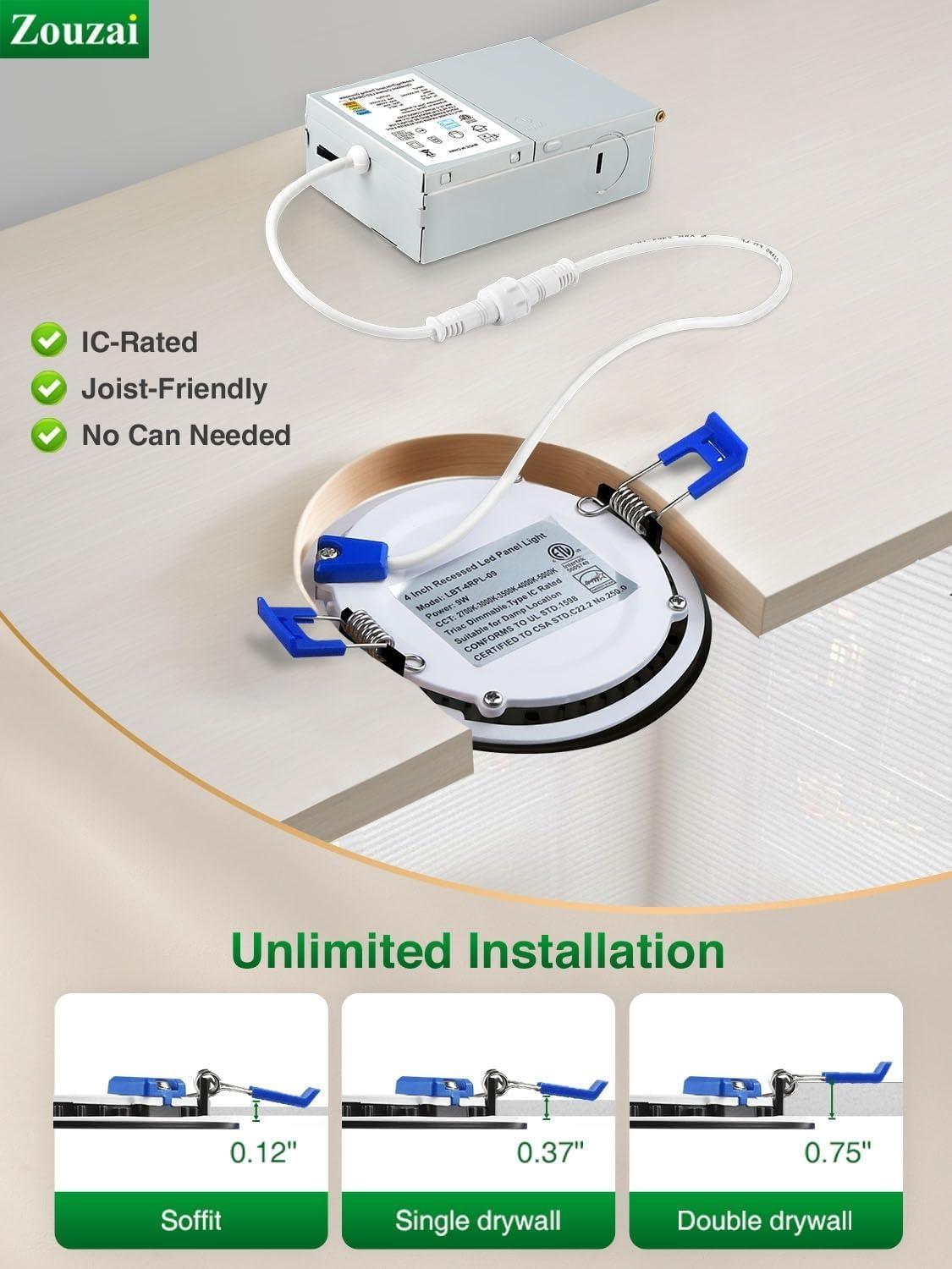 👍【IC Rated】This canless LED recessed light is IC rated, which is permitted to be in contact with insulations in ceilings, meaning the junction box is thermally protected. It only requires as small as 2 inches ceiling spaces, fits various ceilings, and joists. Recessed can is no longer a limitation for your choice.