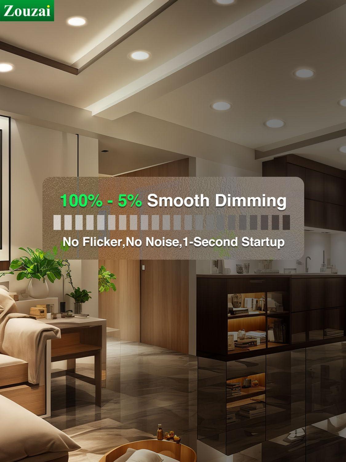 👍【Wide Application】Ultra-thin body, 5%-100% smooth dimming, compatible with most dimmers, suitable damp location, meets kinds of needs in applications such as kitchen, living room, bedroom, bathroom, workplace, common areas, outside soffits and other hard to reach spaces.