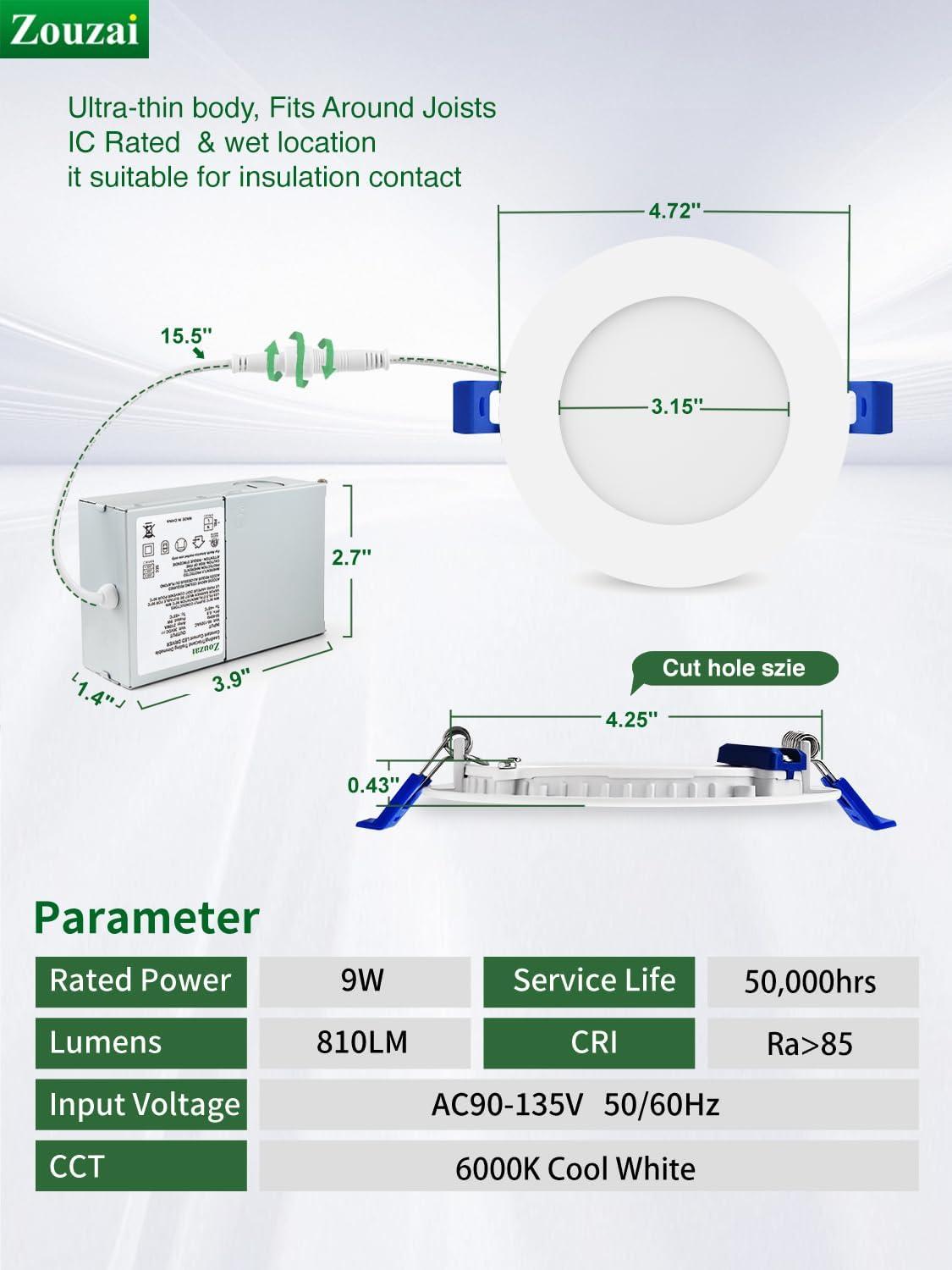 👍【Highest Industry Standards】The whole zouzai's recessed lighting is certified by ETL of a high standard. Different from the wire nut of other brands. Our high-quality wire terminal has passed UL certification. warrant y 5 years.