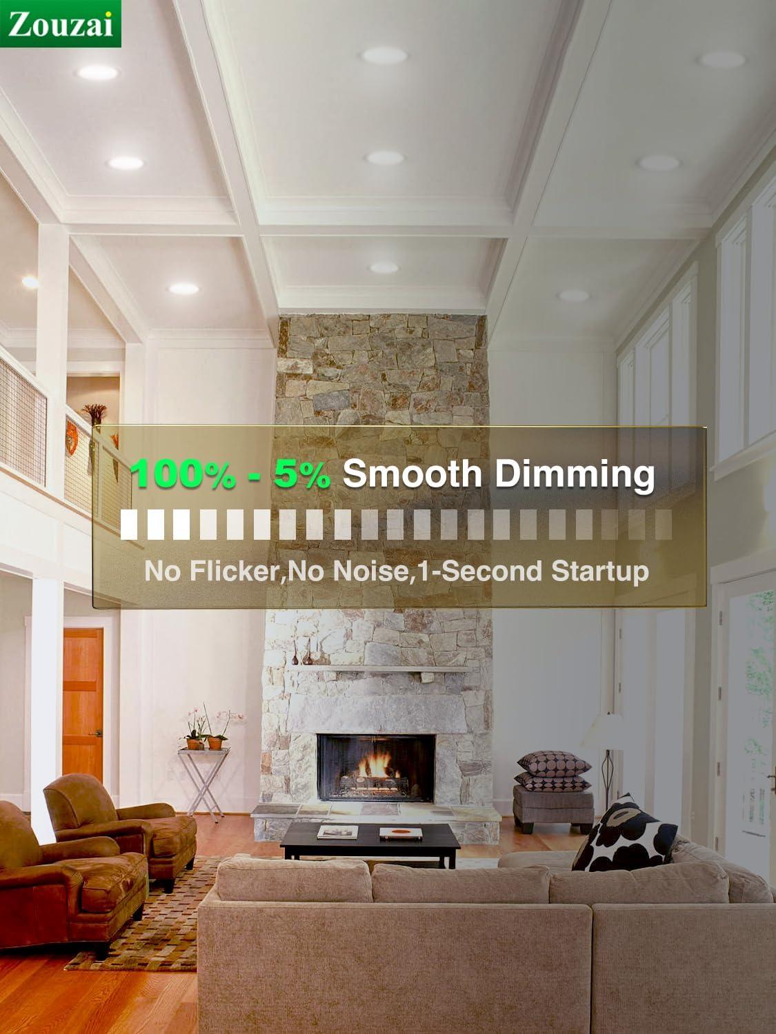 👍【Wide Application】Ultra-thin body, 5%-100% smooth dimming, compatible with most dimmers, suitable damp location, meets kinds of needs in applications such as kitchen, living room, bedroom, bathroom, workplace, common areas, outside soffits and other hard to reach spaces.